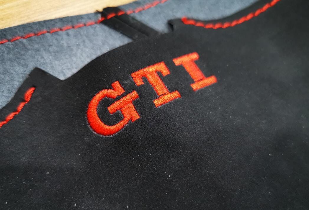 Borduurwerk op stuurhoes